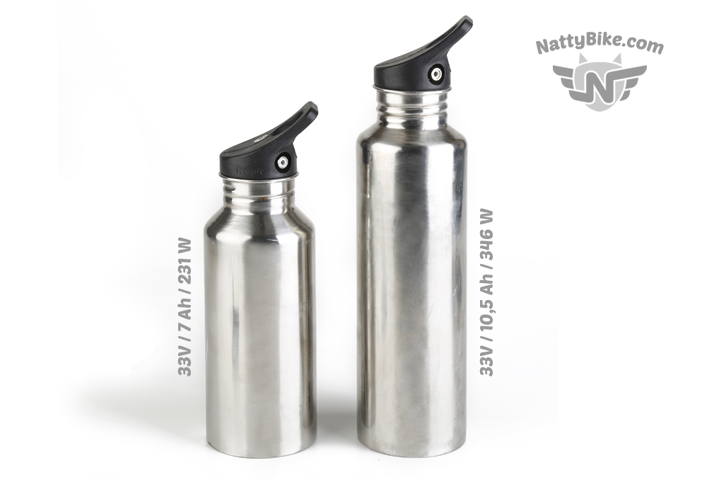 Baterie jsou nejmodernější konstrukce s články Samsung 18650 zalisované v nerezovém pouzdře. Kapacita baterií je 7 Ah (231 W) u menší nebo 10,5 Ah (346 W) u větší baterie. Váha je 1,1 kg u menší nebo 1,6 kg u větší baterie. Baterie se snadno mění a nabíjení zajišťuje nabíječka s výkonem 3A. Umístění baterie je na kole řešeno vložením do košíku na pití - pro každý typ kola používáme jiné košíky podle velikosti a přístupnosti rámového trojúhelníku.