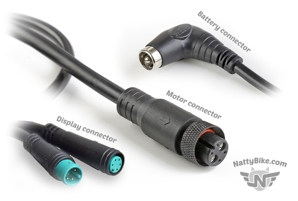 Kabelová sada je dostatečně dlouhá, aby byla možnost instalovat na většinu typů dětských i juniorských kol. Propojuje baterii, display a motor s jednoduše odpojitelnými koncovkami. Uchycení na kole je řešeno plastovými stahovacími páskami a v motoré části stahovacím páskem se suchým zipem.